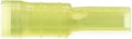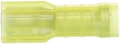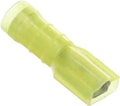 Nylon Fully Insulated Female Disconnect, Length 1.04 Inches, Width .38 Inches, Maximum Insulation .225, Tab Size .250x.032, Wire Range #12-#10 AWG, Color Yellow, Brass, Tin Plated