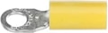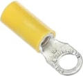 Vinyl-Insulated Ring Terminal, Length 1.06 Inches, Width .31 Inches, Maximum Insulation .210, Bolt Hole #10, Wire Range #12-#10 AWG, Color Yellow, Copper, Tin Plated
