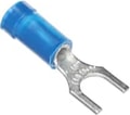 Vinyl-Insulated Fork Terminal, Length .97 Inches, Width .31 Inches, Maximum Insulation .170, Bolt Hole #10, Wire Range #18-#14 AWG, Color Blue, Copper, Tin Plated