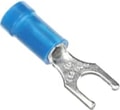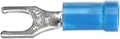 Vinyl-Insulated Locking Fork Terminal, Length .97 Inches, Width .29 Inches, Maximum Insulation .170, Bolt Hole #10, Wire Range #18-#14 AWG, Color Blue, Copper, Tin Plated