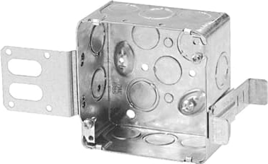 4 inches square box 4 inches height x 4 inches width x 2-1/8 inches depth 30 cubic inches. Concentric knockouts (1/2 and 3/4 inch), mounting strap for steel stud installations and integral additional support bracket. Raised ground screw.