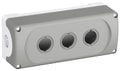 MEP4-0 Enclosure isfour seats empty grey pastic enclosure This enclosure can fit both modular and compact range. Modular range can be with the unique possibility to mount up to 5 contact blocks assigned to one operator. Degree of protection: IP66 UL/NEMAtype 1, 3R, 4, 4X, 12, 13