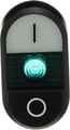 The MPD17-11G Double Pushbutton is: Momentary - Flush/Extended - White/Black Actuator, Green Indicator - Illuminated - Black Plastic - No contact block - Black - Black - O - I