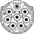 ST-7EP1N8AH100S - Device connector rear mounting, straight, for standard and SPEEDCON interlock, M17, number of positions: 7+PE, contact connection type: Pin, Axial O-ring, Central fixing, shielded: yes, degree of protection: IP67, number of positions: 8, connection method: Crimp connection, series: ST