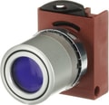 The P9MPLLGV Pushbutton is: Modular metal - Pushbutton with holder - Momentary - Flush - Blue - Illuminated - Satin Chrome Metal