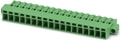 MSTBC 2,5/18-STZFD-5,08 - PCB connector, nominal cross section: 2.5 mm2, color: green, nominal current: 12 A, rated voltage (III/2): 320 V, contact connection type: Socket, number of potentials: 18, number of rows: 1, number of positions: 18, number of connections: 18, product range: MSTBC 2,5/..-STZFD, pitch: 5.08 mm, connection method: Crimp connection, mounting: Direct mounting, conductor/PCB connection direction: 0 °, locking clip: - without locking clip, plug-in system: COMBICON MSTB 2,5, locking: Screw locking mechanism, mounting: Screw flange, type of packaging: packed in cardboard, Corresponding female crimp contacts with current [A] and conductor cross section range [mm2] data: 10A/MSTBC-MT 0,5-1,0 (3190564); 10A/MSTBC-MT 0,5-1,0 BA (3190645); 12A/MSTBC-MT 1,5-2,5 (3190551); 12A/MSTBC-MT 1,5-2,5 BA (3190658). BA = Bandkontakte