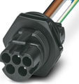 PRC 5-FT25-MC - Device connector rear mounting, Range of articles: PRC 35, housing material: PPE, color: black, number of positions: 5, rated voltage: 690 V AC, rated current: 35 A, Connection method: Crimp connection, Contact connection type: Pin, This item is also available with other cable lengths. For your specific requirements, please contact your local PHOENIX CONTACT subsidiary.