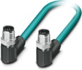 Network cable, Ethernet CAT5e (1 Gbps), 8-position, TPE, highly flexible, Teal, shielded (Aluminum-lined polyester foil, tinned copper braided shield), Plug angled M12, coding: A / IP65, on Plug angled M12, coding: A, cable length: 2 m