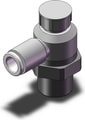Elbow flow control: Meter-out, 1/4 NPT port, Ø6 tubing, with sealant.