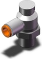 NPT elbow flow control valve, meter-out, 1/4"" port, Ø1/4"" tubing, compact design.
