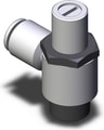 Elbow flow controller, 1/4"" NPT, meter-out, 1/4"" tube, sealant, compact size.