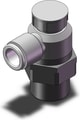 3/8"" NPT elbow flow controller; meter-out; Ø8 tubing; compact design; precise control.