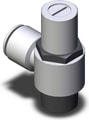 Elbow speed controller, meter-out, 1/2 NPT port, 1/2"" tube OD, sealant included.