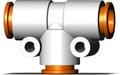 Union Tee fitting, 3/8"" tubing, resin body, same diameter connections.