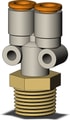 Branch Y fitting, NPT 3/8"" port, 1/4"" tubing, brass construction, sealant included.
