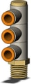 Universal Triple Male Elbow, NPT 1/4"", brass, with sealant, for 1/4"" tubing, no release button.