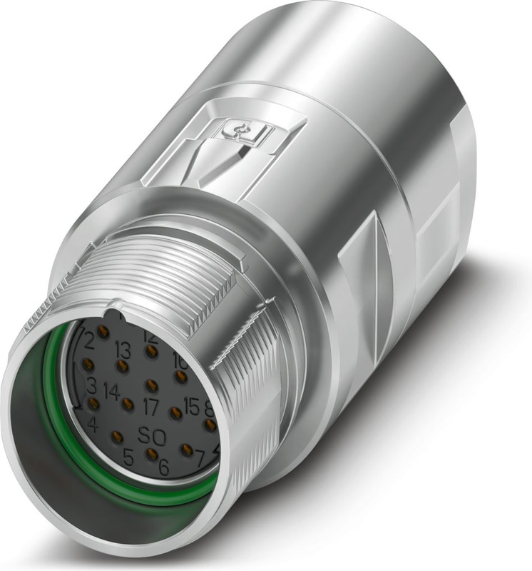 M23-17S1N8A8004 - M23, Cable connector, series: M23 PRO, straight, shielded: yes, Screw locking mechanism, No. of pos.: 17, Direction of rotation: Standard, contact connection type: Socket, Crimp connection, cable diameter range: 9 mm ... 15 mm, coding: N, Item is lead-free in accordance with RoHS II without Exemption 6c (Pb < 0.1 %)