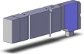 4/5-port solenoid valve, internal pilot, 3-position exhaust center, 24VDC, light/surge suppression, push-turn manual.