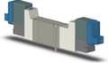 5-Port Solenoid Valve, standard spec, internal pilot, 24V DC, light surge suppression.