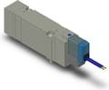 5-port solenoid valve with internal pilot, base-mounted piping, 24VDC voltage, and surge suppressor.