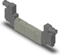 4/5 port solenoid valve, exhaust center, internal pilot, 24VDC, light surge suppressor, Rc thread.