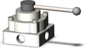 3-position closed center mechanical hand valve, side ported, NPT, 1-port size, standard handle.