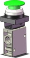 3-port mechanical valve with side mounting, NPT 1/4 port, green push button actuator.