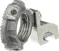 1/2 inch copper free aluminum die cast grounding locknut with tin plated aluminum lay-in-lug and electro zinc plated steel screw.