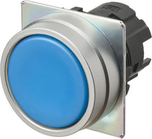 Pushbutton A22NZ Ø22, bezel brushed metal, FLAT, MOMENTARY, CAP COLOR Opaque BLUE,