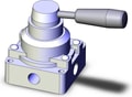 Side ported 3-position valve, Rc(PT) threads, 3/8"" port, standard rod handle, closed center.