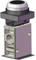 3-port mechanical valve, side mount, NPT 1/4, push button actuator, flush design.