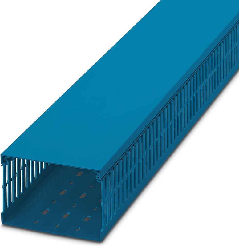 Cable duct for installation and mounting in control cabinets, blue, halogen-free, comprising upper part and mounting base, width: 120 mm, height: 80 mm, length: 2000 mm