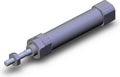 Compact round body cylinder with Ø10 bore, 50mm stroke, spring return, in-line ports, and built-in magnet.
