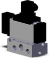 110-120VAC solenoid valve; non plug-in base; DIN connector; side ported; 1/2"" NPTF threads.