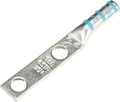 Copper Two-Hole Lug, Long Barrel, Blind End, Max 35kV, Wire Size #6 AWG Wire, 1/4 Inch Bolt Size, 1 inch Hole Spacing, Tin Plated, Die Color Code Blue, Die Code 24