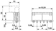 - Le raccordement vertical permet le positionnement de plusieurs rangées sur le circuit imprimé