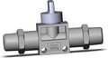 Compact finger valve with gray knob; 2-port size; PT 1/4 connections; handle prevention function.