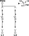 Parafoudre enfichable, suivant Type 2 / Classe II pour réseaux biphasés avec N et PE posés de manière combinée (système à 3 fils : L1, L2, PEN), avec contact de signalisation à distance.